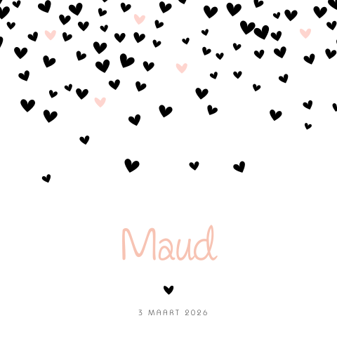 Zwart wit geboortekaartje meisje met hartjes